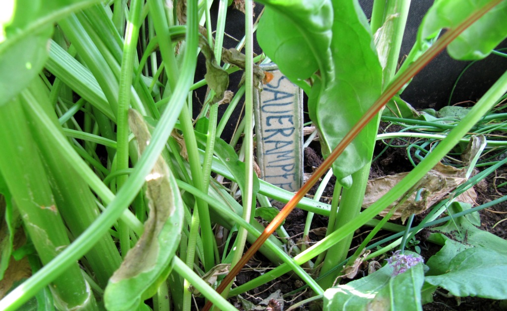 Im nächsten Jahr bin ich dann oft verblüfft, wie groß der Sauerampfer geworden ist. War da nicht mal dieser schöne Pflanzstecker? Für den Rosmarin habe ich inzwischen sogar bereits zwei Stecker, weil der erste überwuchert war und ich ihn glatt vergessen hatte, und im Topf mit dem einjährigen Kerbel hat sich die Zitronenmelisse ausgebreitet. Ich habe den Eindruck, dass all diese und andere „Gartenverschönerungsgegenstände“ recht schnell überwuchert werden oder dass ich beginnen müsste, die Pflanze zu deren Zierde die Verschönerung dienen soll, zurückzuschneiden, damit man das tolle Garten-Design noch sieht. Das kann es meiner Meinung nach nicht sein. Ich werde mich wohl entscheiden, für Pflanze oder Design und im Zweifel der Pflanze den Vorzug geben.