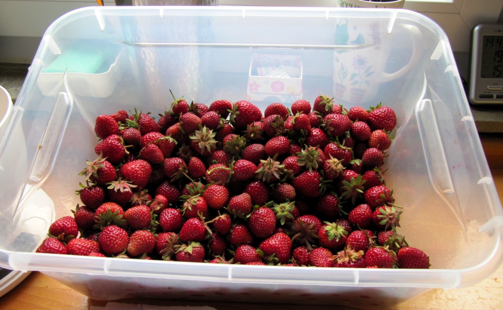 Ich brauche zwar zusätzlich zur Verarbeitung auch noch die Zeit zum Pflücken aber da die Erdbeeren frisch vom Feld sind und sozusagen jede einzelne handverlesen ist, habe ich so gut wie keinen Abfall.