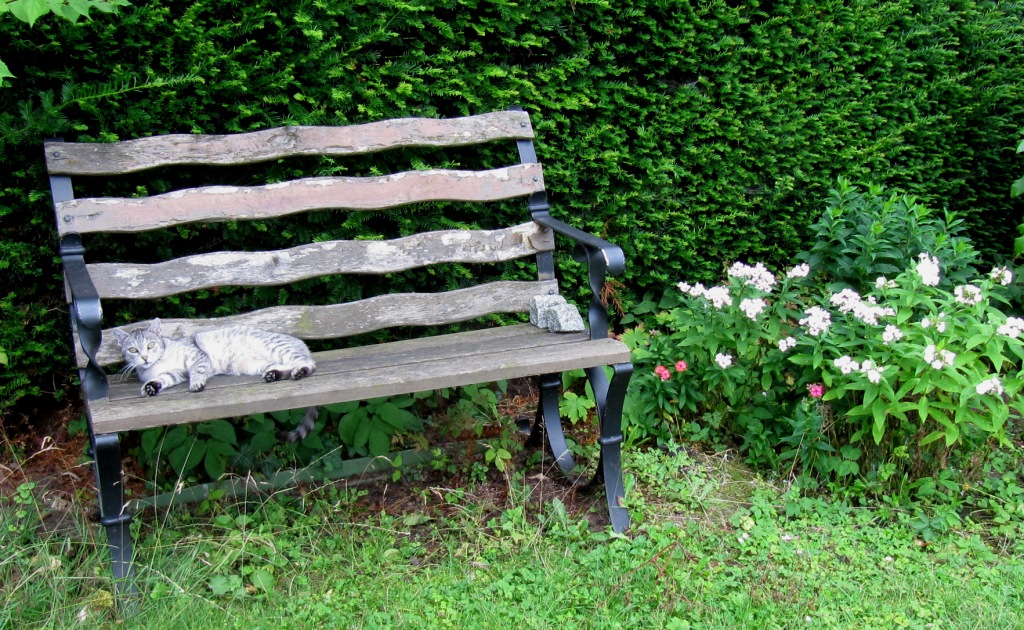 Nach vier intensiven Tagen im Büro, bin ich heute zum ersten Mal wieder im Garten. Erst ‚mal ’nen Tee kochen. Durch den Garten laufen. Die Katzen begrüßen. Eine Tomate anbinden. Die Wegwarten gießen. Entschleunigung pur. Büro? Ich? Wann soll denn das gewesen sein?