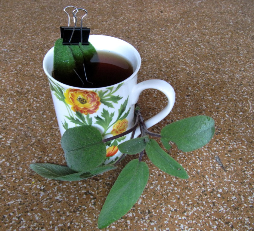 Ich verwende Salbei zur Zeit als Hustentee und zum Räuchern. Als Essenszutat kommt er bisher bei mir weniger vor. Für den Hustentee koche ich einen ganz normalen schwarzen Tee und hänge eine Weile ein oder zwei frische Salbei-Blätter mit einer Mauly-Klemme hinein. Vor dem Trinken entferne ich Klemme und Blätter. Das ist nicht die hohe Schule des Kräutertees, aber einfach umzusetzen. Ich habe eine ganze Weile verschiedenste Kräutertees probiert, aber so sinnvoll und hilfreich die Inhaltsstoffe auch sind, geschmeckt hat mir keiner davon. So bin ich dann auf den Mittelweg schwarzer Tee + Salbei gekommen.