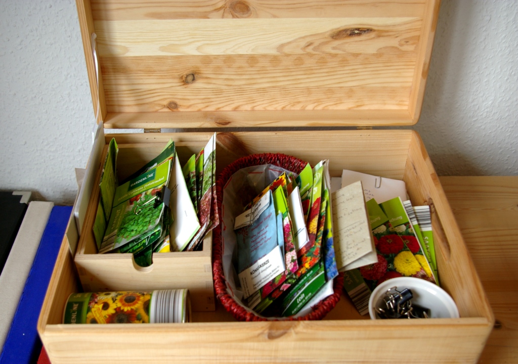 Ich habe mit den paar Dingen, die ich jetzt ausgesät habe (Tomaten, Salat, Wirsing, Wegwarten) meine Anzucht-Kästchen schon fast voll und werde mir für das nächste Jahr notieren, mit was ich am besten anfange und was als letztes dran sein darf. Also doch einen eigenen Kalender führen und von Jahr zu Jahr überarbeiten. Ich hatte mir von einem Jahresplaner genau zu diesen Punkten Unterstützung gewünscht. Nun werde ich ein Aussaat-Buch anfangen. Ich weiß noch nicht, wie es am sinnvollsten funktioniert, daher werde ich erst einmal Notizen auf einzelnen Blättern sammeln und sie im Laufe des Jahres zusammen fügen. Ich stelle mir vor die Aussaaten einfach der Reihe nach aufzuschreiben. Für jede Pflanze eine Seite in einem Notizbuch mit leeren Seiten. Dann kann ich in jedem Jahr notieren, welche Sorten ich nehme und mich von Pflanze zu Pflanze durchhangeln und weiß immer was als nächstes dran kommt. Ein Versuch ist es wert!