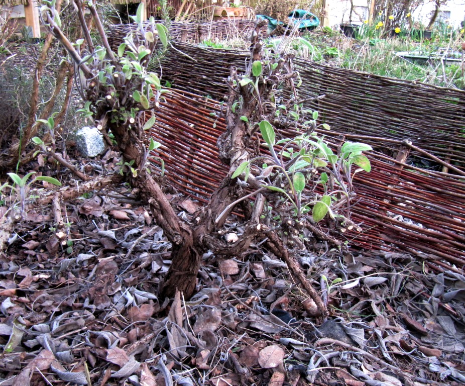Pünktlich zum 1. April war heute morgen die nahegelegene Autobahn A5 Kassel – Frankfurt wegen Schneetreiben gesperrt. Quasi ein Aprilscherz des Wettergottes. Gerade einmal 12 Stunden später locken mich der strahlende Sonnenschein und 14 °C in den Garten. Ich will nur gerade eben mal schauen, ob ich vielleicht die Buchensetzlinge, die vorgestern per Post kamen einpflanzen kann. Doch kaum bin ich im Garten gibt es bei jedem Schritt eine neue Aufgabe, die zu tun ist. OK, jetzt fängt also das wieder an :-) Ich muss mir gar keinen Plan mehr machen, sondern gehe einfach nach draußen und erledige die Dinge, die mir über den Weg laufen. Heute schneide ich den knorrig gewordenen Salbei zurück, steche die Hälfte des zu groß gewordenen Pfefferminz-Busches aus und entferne dessen trotz massiver Wurzelsperre wuchernden Seitentriebe.