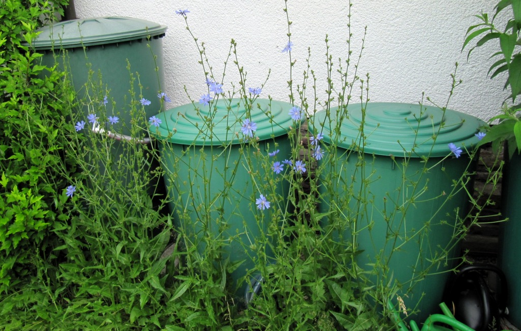 Am Straßenrand werden Wegwarten so etwa 30 bis 50 Zentimeter hoch. Das liegt jedoch nicht daran, dass die Pflanzen von sich aus klein bleiben, sondern daran, dass die Straßenränder regelmäßig gemäht werden und die Pflanze immer wieder von Neuem anfangen muss zu wachsen. Irgendwo habe ich gelesen, die Wegwarte brauche das Salz des Winterdienstes, um zu wachsen, aber das kann ich nicht bestätigen. Ich streue zumindest kein Salz in meinem Garten. Ich glaube eher, Wegwarten sind so anpassungsfähig, dass sie trotz Wintersalz und Autoabgasen am Straßenrand gedeihen können. Das schließe ich auch daraus, dass Wegwarten mit guter Gartenerde plötzlich bis fast 2 Meter in die Höhe schießen. Ich nutze sie mittlerweile als Sichtschutz vor den Regentonnen.