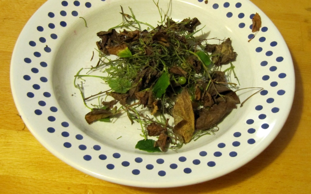 reife Früchte dabei seien. Ich glaube das nicht. Ich pflücke schon sehr ordentlich und trotzdem bleibt beim Putzen z.B. der Johannisbeeren noch richtig viel übrig. Ich möchte keinen Saft aus diesen Stielen und Blättern herstellen – und mich später fragen, weshalb der Gelee in diesem Jahr so komisch schmeckt.