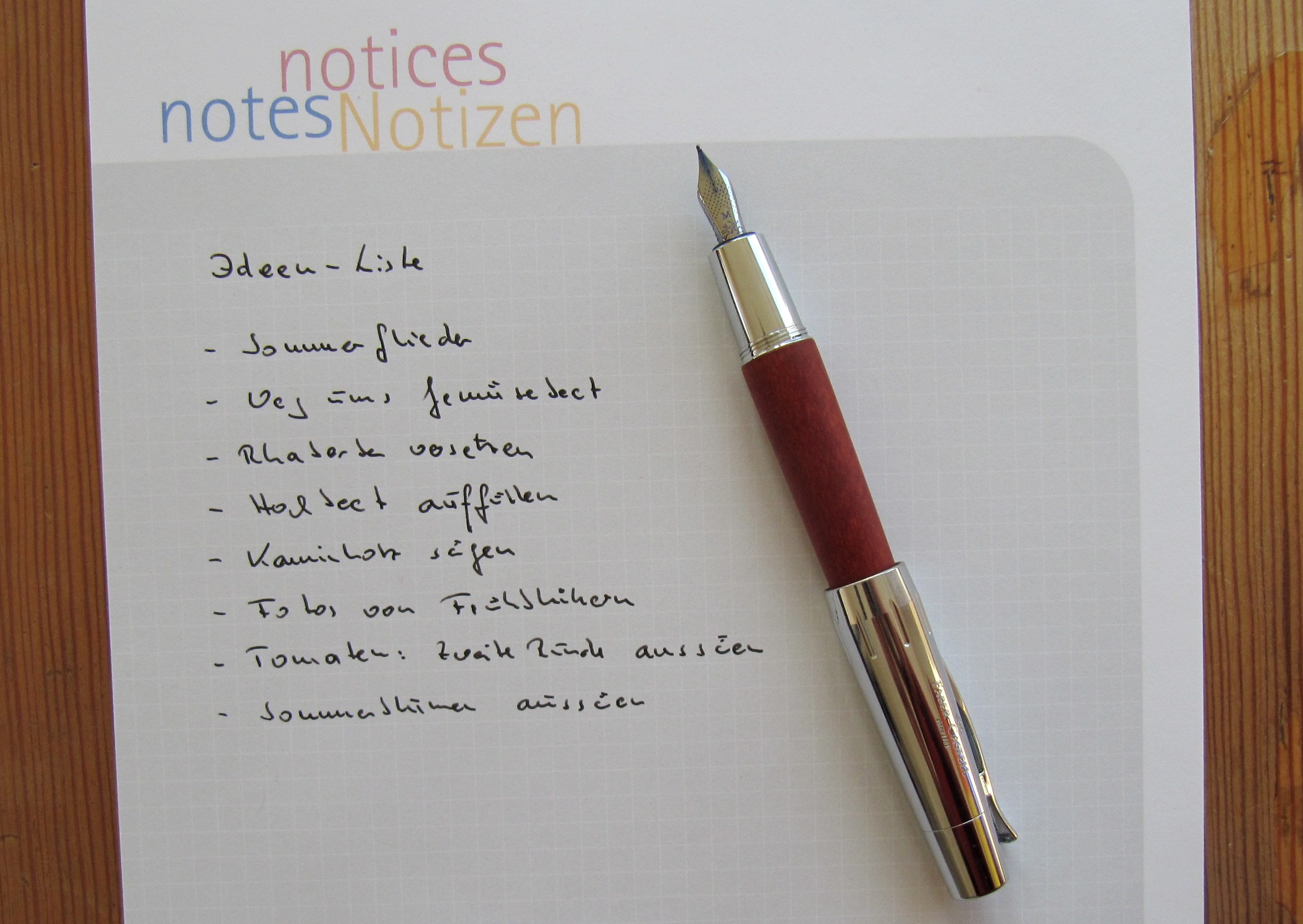Mit den ersten Tagen Gartenwetter habe ich ganz automatisch wieder eine meiner Ideenlisten angefangen. Ich nenne sie ganz bewusst nicht ToDo-Liste, weil ich mit letzterem immer den Stress verbinde, nicht alles geschafft zu haben. Die Ideenliste ist für mich – wie der Name schon sagt – eher ein Ort zum Sammeln von Ideen. Da kommt alles drauf, was mir so begegnet, wenn ich durch den Garten laufe. Vieles davon lässt sich gar nicht gleich erledigen und ich weiß auch nicht, wann das Wetter dafür gut genug ist oder ob ich nicht am nächsten Wochenende lieber einen Stadtbummel mache. Also ersteinmal auf die Ideenliste.