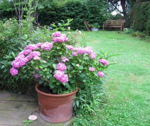In vielen Gärten stehen die Bauern-Hortensien gerade in voller Blüte und auch die Gartenzeitschriften werden nicht müde von ihnen zu schwärmen. Dabei müssen es für den Garten gar nicht einmal neuesten und teuersten Sorten sein. Mit ein paar Jahren Geduld, wird auch aus einer kleinen Pflanze für 2 oder 3 Euro ein prächtiger Busch. In den letzten Jahren haben sich bei mir im Garten einige Hortensien angesammelt. Es ist beeindruckend, aber auch ein bisschen erschreckend zu sehen, wie unterschiedlich sie sich entwickelt haben. Ohne es je beabsichtigt zu haben, habe ich eine Art Versuchsgarten für Hortensien geschaffen. Insgesamt habe ich, in einem Garten mit etwa 500 Quadratmetern, 5 verschiedene Plätze mit Hortensien. So arg unterschiedlich können die Plätze doch gar nicht sein, dachte ich anfangs. Aber nach ein paar Jahren Gartenerfahrung und Hortensienpflege wird deutlich, dass es selbst auf solch einer nicht allzugroßen Fläche, zusätzlich zu den offensichtlichen Fragen wie Himmelsrichtung und Wasserversorgung, ein deutliches Mikroklima gibt.