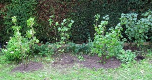 Ich hatte das Beet für die Johannisbeeren komplett neu angelegt und dafür auch frische Erde aufgefüllt. Es war wohl einfach zu wenig Erde oder ich habe die Büsche nicht tief genug eingesetzt. Vor der Ernte und dem Rückschnitt habe ich grob das Unkraut entfernt und dabei zeigt sich, dass die Wurzeln der Büsche aus der Erde schauen. Einige Sträucher sitzen außerdem zu eng nebeneinander. Ich nutze also die Gelegenheit dass Beet als Ganzes zu überarbeiten. Zwei Büsche rücke ich dabei etwas weiter nach vorne und in der nächsten Woche werde ich dann noch neue Erde auffüllen. Es ist sicherlich nicht ideal, gut eingewachsene Büsche umzusetzen, aber ähnlich wie beim Rückschnitt, glaube ich dass es schlechter ist, gar nichts zu tun.