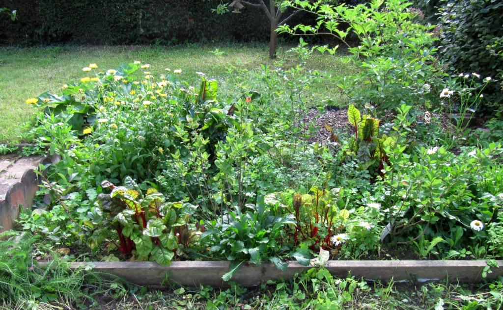 Als erstes ernte ich nach und nach den Mangold. Mangold ist offensichtlich so robust und eigenständig, dass man ihn nach der Aussaat bedenkenlos für lange Wochen alleine lassen kann. Dann kommt man wieder und erntet. Das ist ein Gemüse, das zu meinem Garten passt. Zudem lässt sich der Mangold bis August aussäen. Also einfach immer mal wieder Nachschub säen.