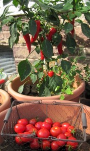 Ein paar halbreife Tomaten hängen noch an den Sträuchern, nachdem ich durchgepflückt habe. Vielleicht würden sie mit den letzten Sonnenstrahlen doch noch ausreifen oder über Kopf hängend im Keller, wer weiß. Aber für mich ist heute Schluss mit Tomaten 2017. Dies ist das vierte Jahr, in dem ich mich intensiv mit den Tomaten beschäftige. Inzwischen ist eine gewisse Routine entstanden. Zwar hat jedes Jahr wieder neue Herausforderungen, aber ich bekomme langsam ein Gespür für die Tomaten. Es dauert einfach ein paar Jahre, bis man sich mit einer Pflanze auskennt. Sicher wird es auch im nächsten Jahr wieder Dinge geben, die mich überraschen, aber im Prinzip habe ich „meine“ Tomaten nun verstanden. Dieses Jahr haben mich besonders die Nachzügler beeindruckt. Obwohl ich die letzten Pflanzen erst im Juni in große Kübel gesetzt habe, habe sie dennoch reichlich Früchte getragen. Auch die Spitzpaprika, die ich zwischen die Tomaten gestellt habe, hat sich prächtig entwickelt. So werde ich sicher auch in den nächsten Jahren immer wieder Neues erleben und natürlich werde ich weiter mit Sorten und Aufzucht experimentieren. Ich denke, da wird keine Langeweile aufkommen. Für 2017 ist der Tomatensommer nun aber vorbei.
