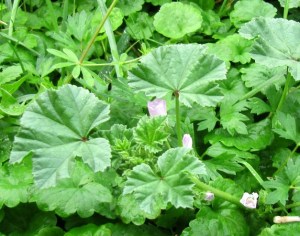 Ich laufe also auf dem Parkplatz, dessen Namen ich mir nicht gemerkt habe, mit meinem Butterbrot in der Hand auf und ab, kehre ab und an ein den Tisch auf dem meine Teetasse steht zurück, um zu prüfen, ob er schon etwas abgekühlt ist. Bei jeder dieser Schleifen fällt mir ein anderes Kraut auf. Ich bin völlig überrascht, was sich auf diesem vernachlässigten Grünstreifen alles findet. Die Arbeit der Autobahnmeisterei in allen Ehren, doch ich gehe davon aus, dass die Pflege von Autobahnparkplätzen sich auf das Mähen der Grünfläche beschränkt. Da wird sich niemand darum sorgen, ob die Malve auch im Frühsommer eine Stütze bekommt. Schließlich fange ich an, mir aufzuschreiben, was hier alles wächst. Da kommt eine halbe Apotheke zusammen und satt würde man auch werden, mit dem was hier an Salat und Gemüse wächst.