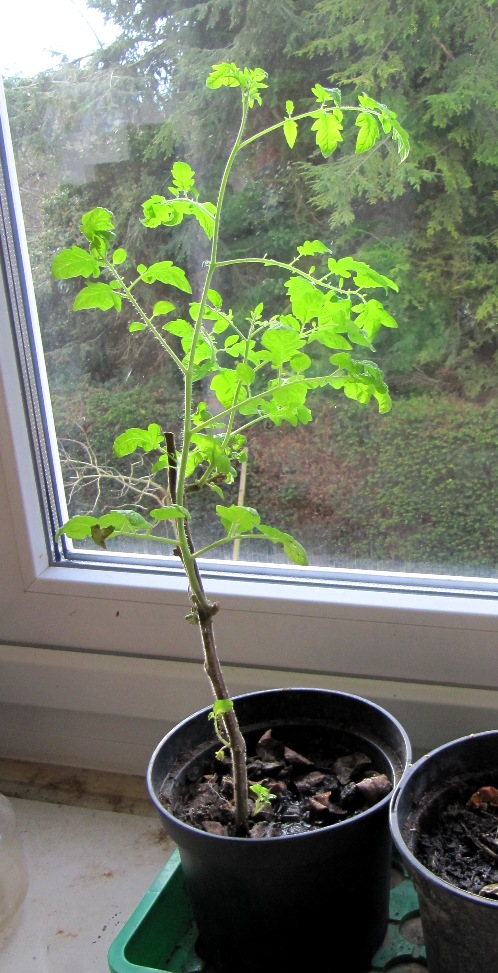 Im Frühjahr und Sommer bin ich immer wieder davon überrascht, wie robust Tomaten sind. Ein abgebrochener Seitentrieb wächst ohne Probleme in einem neuen Topf weiter und im Herbst heruntergefallene Tomaten keimen im nächsten Frühling von ganz alleine. Wenn Tomaten also gar nicht so empfindlich sind, wie ich bisher dachte, dann ist es vielleicht doch auch möglich sie über den Winter zu bekommen. Meine Eltern überwintern regelmäßig ihre Geranien. Ob das vielleicht auch mit Tomaten möglich ist? Ich habe dazu im letzten Herbst ein Experiment gestartet. Noch ist nicht entschieden, ob es gelingt. Die Tage werden wieder länger, der Zenit des Winters  ist überstanden – zumindest in Bezug auf die Helligkeit. Die ist ein guter Zeitpunkt einen Zwischenbericht zu erstellen.