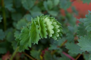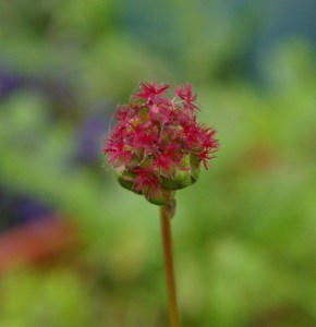 Die jungen Blätter der Pimpinelle sind jedes einzeln gefaltet und wirken sehr fragil. Im Laufe des Jahres wird die Pflanze als Ganzes jedoch robust und kräftig, während jedes einzelne Blatt zart und hauchdünn bleibt. Später im Jahr bilden sich kugelige Blüten mit winzigen roten Blütenblättern. Dieser Widerspruch zwischen der Zartheit des einzelnen Blattes und der kräftigen Pflanze führt leicht dazu die Pflanze zu unterschätzen. Genau wie beim Ruprechtskraut mit seinen zierlichen, rosafarbenen Blüten, ist man leicht zu arglos und kaum ein paar Wochen später ist das Gemüsebeet fest in der Hand des angeblich so harmlosen Eroberers. Nach den ersten Schüsseln mit Wildkräutersalat, werde ich im Gemüsebeet kräftig aufräumen, um all die so freundlich daherkommenden Wucherer in die Schranken zu weisen.