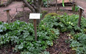 Ein paar Beete weiter hat sich das, was möglicherweise die Mariendistel ist, so sehr ausgebreitet, dass es gleich an mindestens 4 verschiedenen Schildern wächst. Es ist tröstlich zu erleben, dass selbst in einem gut gepflegten Schau-Garten wie diesem, ein Teil der Pflanzen zum Wuchern neigt und einige nach dem Winter nicht wieder kommen. Sobald es richtig Frühling ist, wird es nötig sein, ein paar der Schilder neu zu setzen und einiges an Pflanzen kräftig einzudämmen.