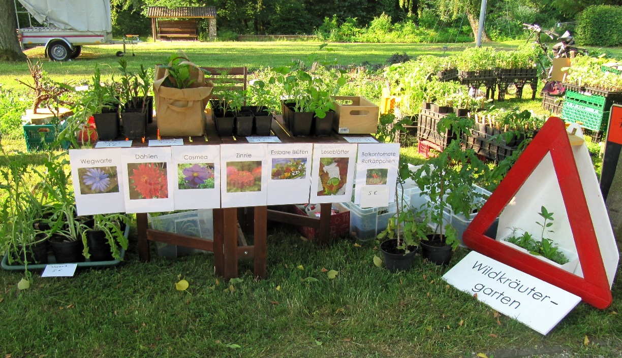 Zurück zu Hause wird klar, wie gering der finanzielle Umsatz dieses Tages ist. Bei aller Begeisterung für die Pflanzen, den Stand im Botanischen Garten und den Austausch mit den Besuchern, merke ich, dass mir das doch nachgeht: Seit 6 Wochen die Pflanzen vorgezogen, umgetopft und gepflegt. Dazu der ganze Aufwand mit Transport und Standaufbau. Und dann beende ich den Tag mit 60 Euro Einnahmen, obwohl ich sogar viele meiner Pflanzen verkauft habe. Das will ich nächstes Jahr besser machen! Die Zinnien bekommen mehr Sorgfalt und größere Töpfe, dann lassen sie sich für 2 Euro verkaufen. Produkte, die schlecht gehen, fallen weg: Dahlien, Lilien. Das ganze Thema „Wildkräutergarten“ überzeugt die Besucher nachwievor nicht. Die allermeisten ignorieren die Schilder komplett. Die wenige, die sie überhaupt wahrnehmen halten sie für die Beschreibung meines Pflanzensortimentes und beschweren sich, dass Zinnien keine Wildkräuter sind. Selbst so etwas Einfaches wie „essbare Blüten“ braucht überraschend ausführliche Erklärungen. Die meisten Töpfchen mit essbaren Blüten verkaufe ich, weil Kapuzinerkresse mit dabei ist und kein anderer Stand Kapuzinerkresse verkauft.