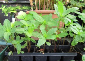 Allen Anleitungen des Saatgutes zum Trotz habe ich nun vor zwei Wochen – mitten in der größten Hitze – Ringelblumen, Zinnien und Sonnenhut (Rudbeckia) neu ausgesät. Die neu gesäten Töpfchen stehen möglichst im Schatten, werden täglich gepflegt und haben einen Untersetzer, damit das Gießwasser nicht davonläuft. Inzwischen sind daraus ernstzunehmende kleine Pflänzchen geworden. Wenn sie in der gleichen Geschwindigkeit weiter wachsen, kann ich mich über einen blühenden Herbst freuen.
