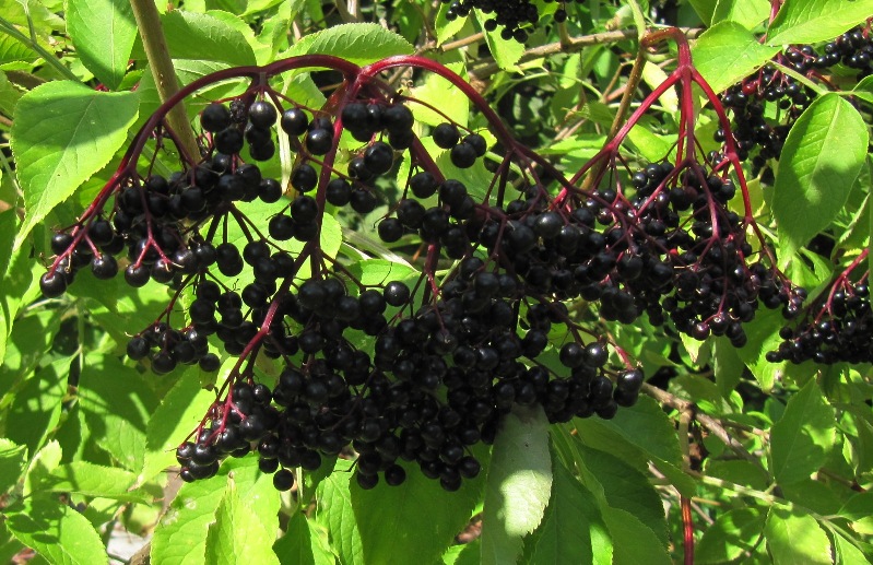 In diesem Jahr habe ich die erste eigene Ernte aus zwei wilden und einem baumgeschulten Holunderbusch. Die Unterschiede sind erheblich. Die Holunderbeeren des gekauften Busches sind alle gleichzeitig reif und der Busch trägt wesentlich mehr Dolden. Der einzelne gekaufte Busch bringt mehr Ertrag als mehrere Wilde zusammen. Mein Haschberg ist noch recht niedrig und die Ernte geht ganz ohne Leiter schnell von der Hand.