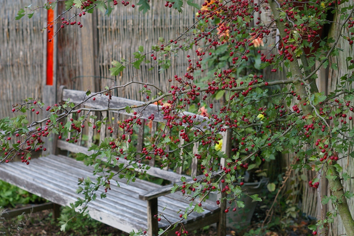 Die Weißdornbeeren leuchten weit und breit wie sonst nur der Birnbaum in Ribbecks Garten. Wie jedes Jahr, überlege ich, was sich vielleicht aus diesen Beeren herstellen ließe. Vieles andere muss ich mühevoll pflegen, damit es Früchte trägt, während der Weißdorn ohne eine meine Unterstützung übervoll mit Früchten hängt. Blätter und Blüten (Crataegi folium cum flore) sind ist als herzstärkende Heilpflanze bekannt. Bevor ich zum Erntekorb greife, möchte ich näheres zu den Früchten wissen. Sind sie ebenso heilkräftig wie Blätter und Blüten? Kann man sie roh essen oder müssen sie gekocht werden? Gibt es eine „übliche Verwendung“? Wenn die Früchte eine ähnliche Wirkung, wie Blätter und Blüten hätten, dann wäre mein Weißdorngelee eine Art Arzneimittel und nicht als tägliches Frühstück geeignet.