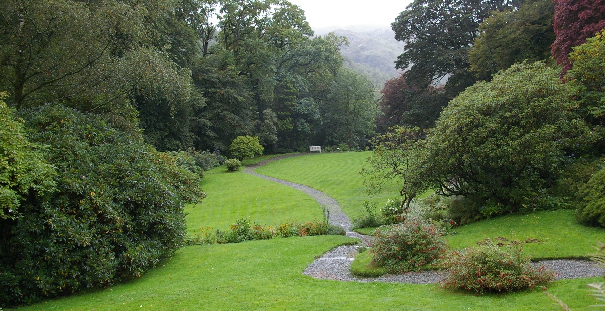 Zwei Tage später mache ich mich dann auf den Weg nach Rydal, um den zweiten Garten zu sehen. Der Ort Rydal besteht nur aus wenigen Häusern und einer einzigen, sehr engen Seitenstraße. An dieser Straße liegen sowohl der Garten von Wordsworth als auch das weitläufige Gelände von Rydal Hall und als dritter Anlieger ist eine Kirche. Den Umgang mit den viel zu wenigen Parkplätzen erlebe ich als typisch britisch. Anstatt nun auf mürrischen Schildern auf Parkverbote hinzuweisen oder Parkuhren aufzustellen, gibt es einen einfachen und freundlichen Hinweis: Wenn Sie hier parken, werfen Sie bitte etwas in die Sammeldose in der Kirche. Auch die vielen „Wanderer Willkommen“ Schilder an den privaten Forstwegen sind mir schon aufgefallen.