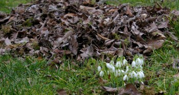 Strich, Strich, Strich. Mit jedem Strich des Rasenbesens (vielleicht ist es auch ein Laubrechen oder eine Laubharke) kommen die unter dem Laub versteckten Pflanzen ans Licht. Da ein paar Schneeglöckchen, die ich bisher übersehen hatte. Dort schauen die ersten Zentimeter der Osterglocken hervor. Die Frühlingsboten warten selbst auf die ersten warmen Tage, damit sie endlich den Frühling verkünden können. Heimlich hoffe ich darauf, die ersten Duftveilchen zu entdecken. Das Moos auf der Wiese wird tatsächlich mehr.