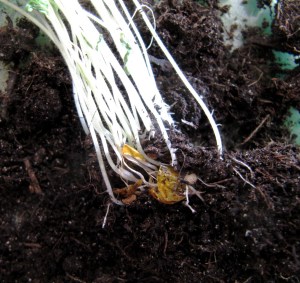 Beim Umtopfen wird deutlich welche Vielzahl an Keime aus einer einzigen Wildtomate sprießen. Mir war tatsächlich nicht klar, dass soo viele Kerne in einer Wildtomate stecken. Ansonsten hätte ich nur eine Tomate verwendet und den Inhalt gleich auf mehrere Töpfe verteilt. Nun muss ich sehen, wie ich die winzigen Pflänzchen voneinander trennen kann.