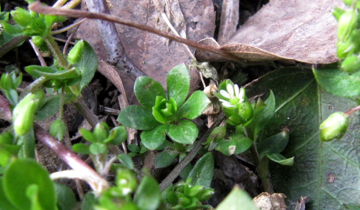 Ich habe schon immer Vogelmiere im Garten, aber eine Belagerung wie in diesem Jahr gab es noch nie. Als der Garten sich im letzten Herbst langsam von der Trockenheit des Sommers erholte, haben sich an einigen Stellen andere Pflanzen angesiedelt als gewohnt. Auf der großen Wiese war es besonders deutlich. Dort wo das Gras lange braun blieb, entwickelten sich neue Kissen von wildem Storchschnabel. Ich habe den Eindruck, dass selbst die halbschattige Fläche unter der Felsenbirne von dieser Veränderung betroffen ist. Sie wurde in den letzten Jahren vom Waldmeister erobert. Doch während der Waldmeister gerade erst frisch austreibt, ist die Fläche bereits fast vollständig von Vogelmiere bedeckt. Die Wucherer Waldmeister und Storchschnabel haben Mühe dagegen zu halten.
