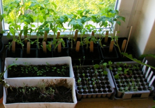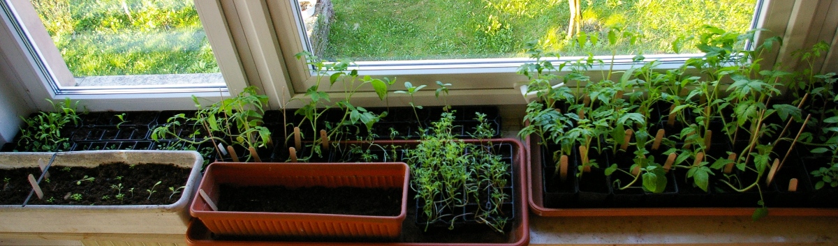 In diesem Jahr habe ich etwas Neues ausprobiert und säe den Salat gleich in Blumenkästen, die dann später ohne weiteres Umpflanzen nach draußen wandern. Noch ist es etwas experimentell. Ein Saatband für Pflücksalat ist nicht aufgegangen. Vielleicht war es aber schon zu alt. Auch die Sommerblumen habe ich gleich in kleinen Töpfen ausgesät, um mir das Umtopfen zu sparen. Mittlerweile habe ich meine Fensterbank in ein richtiges Frühbeet verwandelt.
