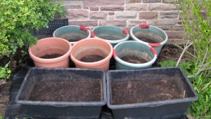 Und so stehe ich nun auf der knöchelhohen Wiese aus Löwenzahn, ziehe zum fünften Mal die Kapuze der Winterjacke über den Kopf und frage mich, weshalb meine Kartoffeln nicht längst gesetzt sind. Ich übergehe die Gedanken der Rechtfertigung, weshalb das mit den Kartoffeln so ist, und fange an Blumenkübel und Mörtelwannen aus den verschiedenen Ecken des Gartens am Komposthaufen zu versammeln. Heute ist der Tag für mein mobiles Kartoffelbeet. Der erste Teil meines Kartoffelexperimentes.
