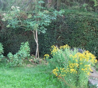 Mein Frühstücksblick von der Terrasse geht nicht mehr auf den überschwänglich blühenden Holunderbusch vor einer wuchernden Eibenhecke. Stattdessen steht entlang der kleinen Trockenmauer das Johanniskraut in voller Blüte. Eine neue Frühstücksstimmung. So lange ist es gar nicht her, dass der Holunder blühte. Oder doch? Manchmal geht mir der Wandel zu schnell. Bleibt doch noch ein bisschen, ihr weißduftenden Holunderwattebälle. Doch der Holunder ist verblüht, die Hecke ist geschnitten.