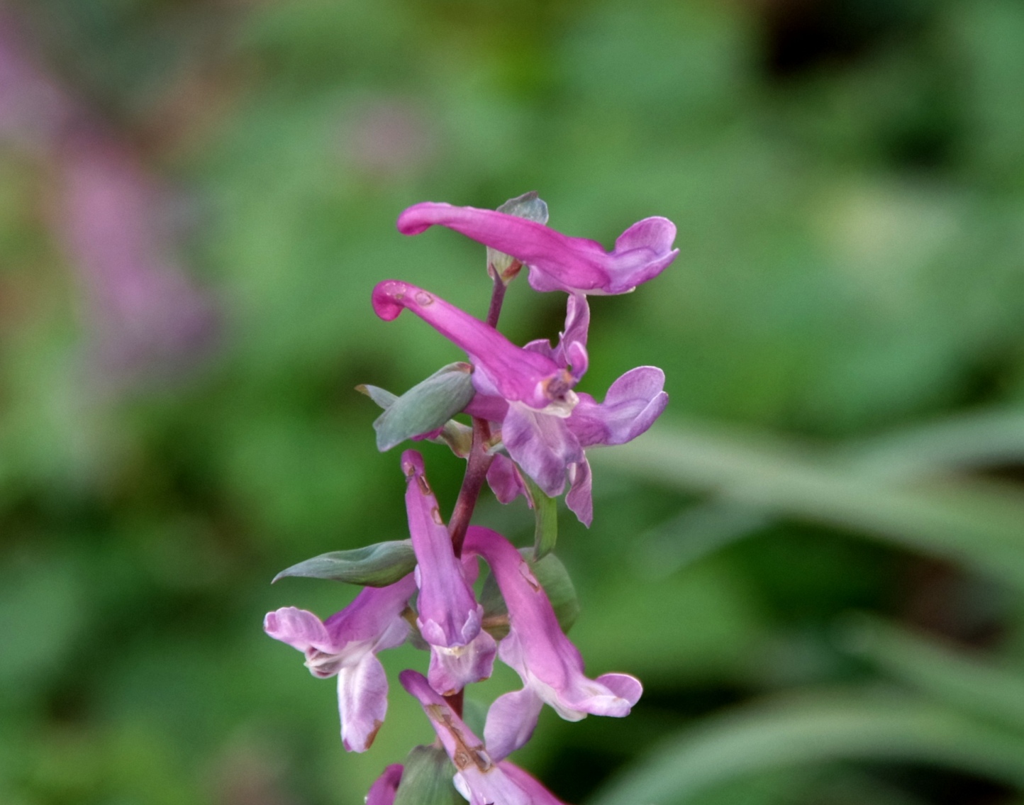 Anfangs habe ich den Lerchensporn als Unkraut beschimpft. Aber inzwischen mag ich ihn. Ein Erdrauchgewächs. Gärtner, die sich solche Namen ausgedacht haben, müssen wirklich sehr romantische Menschen gewesen sein. Er bildet unter der Hainbuchenhecke ganze Teppiche. In der Wiese und auf den Gemüsebeeten versuche ich, ihn etwas zu bremsen. Mit mehr oder weniger großem Erfolg.