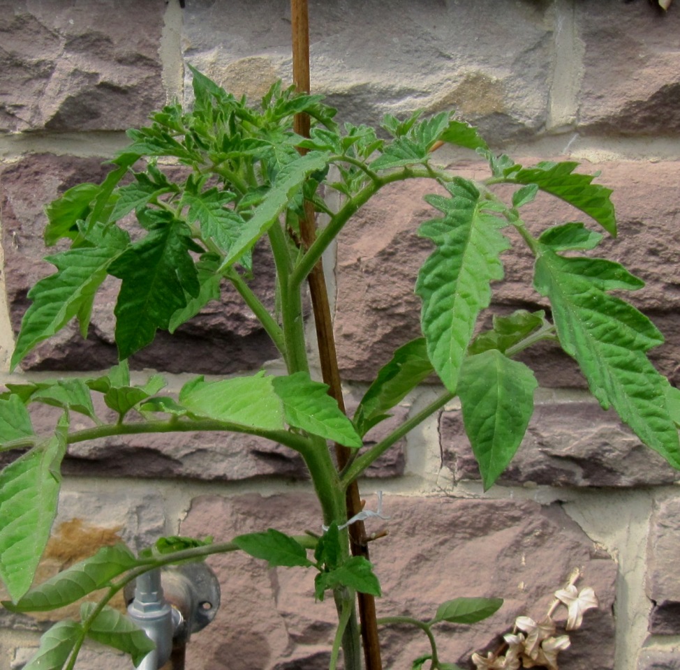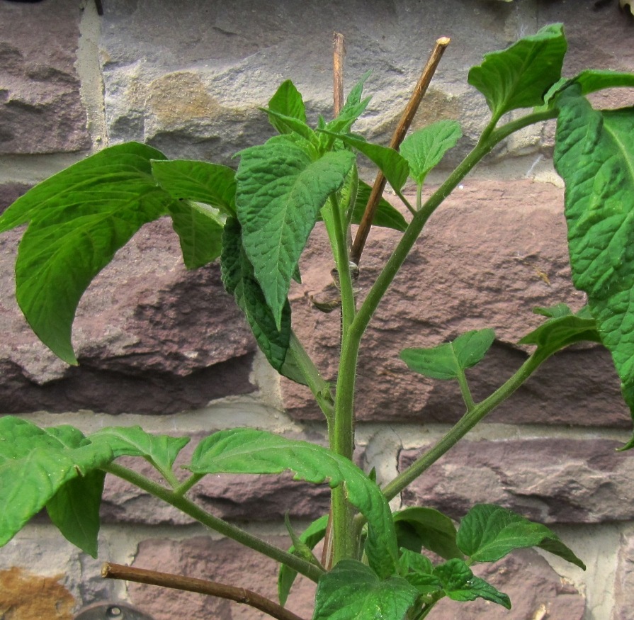 Zierlich. Fast schon kleinwüchsig wie eine Balkontomate. Hellgrüne Blätter.