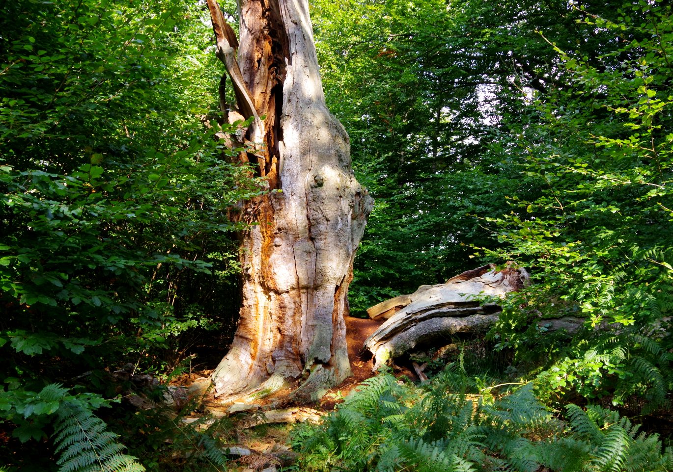 Nördlich von Kassel, ganz in der Nähe des Städtchens Trendelburg, liegt der Urwald der Sababurg. Die heute als Urwald bezeichnete Fläche steht seit 1907 unter Schutz. Aber selbst nach über 100 Jahren ist die Fläche kein echter Urwald. Bis eine Fläche, die einmal ein bewirtschafteter Wald war, wieder zu einem Urwald wird, dauert es einige Menschenleben. Bäume sind zu langsam für unsere schnelllebige Zeit. Bereits seit 1865 wird der Wald nicht mehr als Hutewald* genutzt, und noch immer sind einige der damaligen Huteeichen und -buchen als mächtige und vitale Baumriesen hier zu sehen.