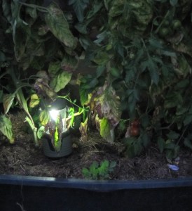Mittlerweile pflücke ich die Tomaten für das Abendessen mit der Taschenlampe.