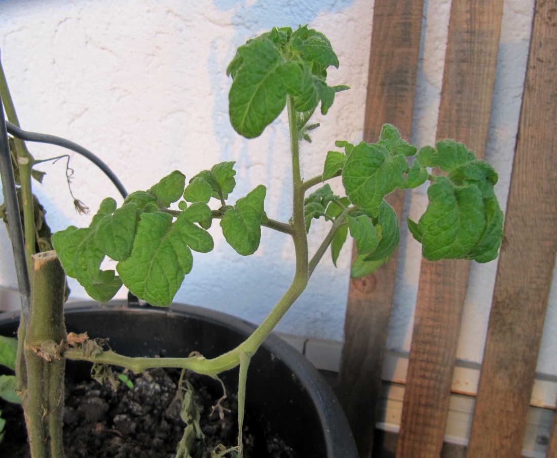 Die kalten Novembernächte trieben die Überwinterungstomaten früher ins Haus, als mir lieb war. Alle paar Tage wechselten die Pflanzen zwischen drinnen und draußen. Trotz der guten Auswahl und des hoffnungsvollen Anfangs, sind mir drei meiner vier Pflanzen inzwischen eingegangen. Die vierte, eine Ruthje, hält sich dagegen sehr gut. Vielleicht war eine der Novembernächte doch zu kalt? Vielleicht lassen sich manche Sorten generell schwieriger über den Winter bringen?