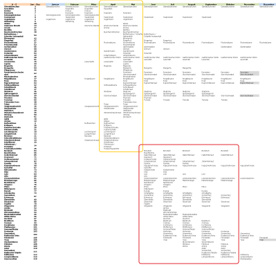 Im letzten Jahr habe ich Monat für Monat notiert, was gerade blüht. Alle diese Notizen habe ich jetzt zu einer großen Jahresblütenübersicht zusammengefasst. Ich bin überrascht, wie viele verschiedene Blüten in meinem Garten zu finden sind. Vor einigen Jahren habe ich zwar ein Staudenbeet angelegt, doch ansonsten beschäftige ich mich eher mit Tomaten, Gemüse und Beeren. Durch meine monatlichen Sammlungen habe ich nun den Überblick über 100 verschiedene Blüten. Ich kann nun viel gezielter planen: In welchem Monat blüht nur wenig? Was blüht schon und was passt noch dazu?