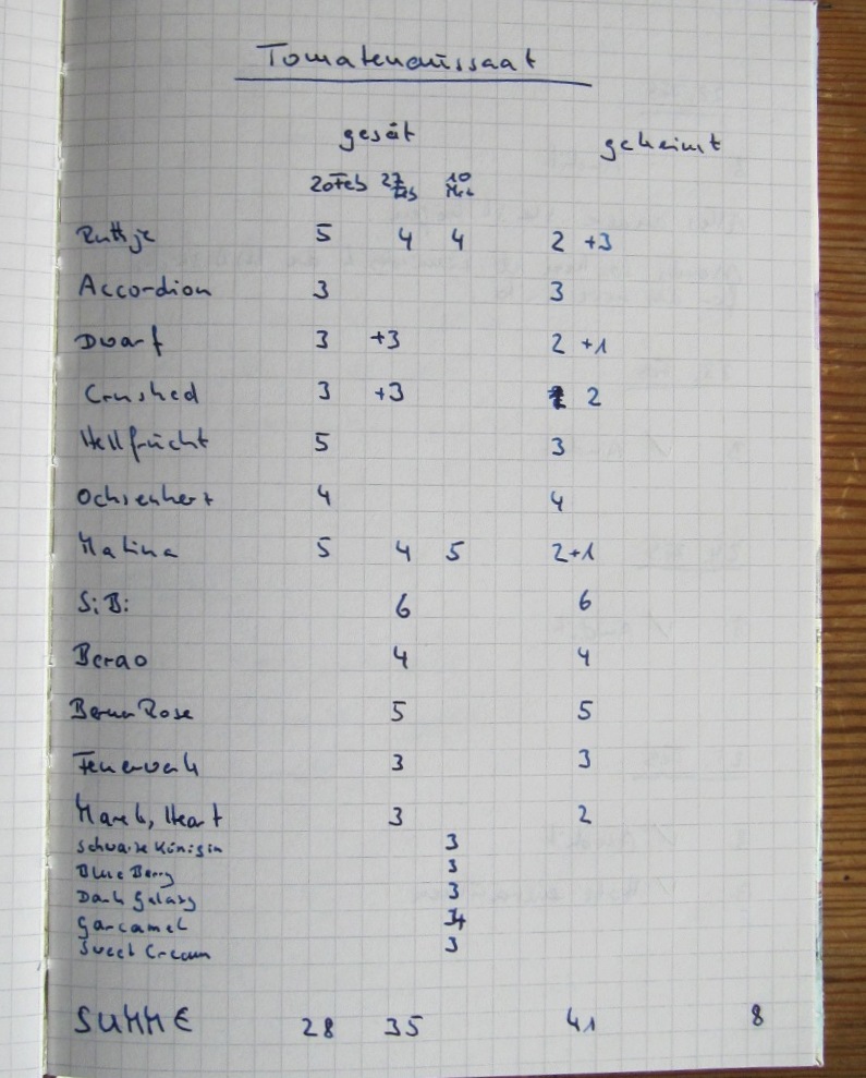 • Die Tomatensorten, die zu wenig ausgekeimt sind, werden noch einmal gesät.