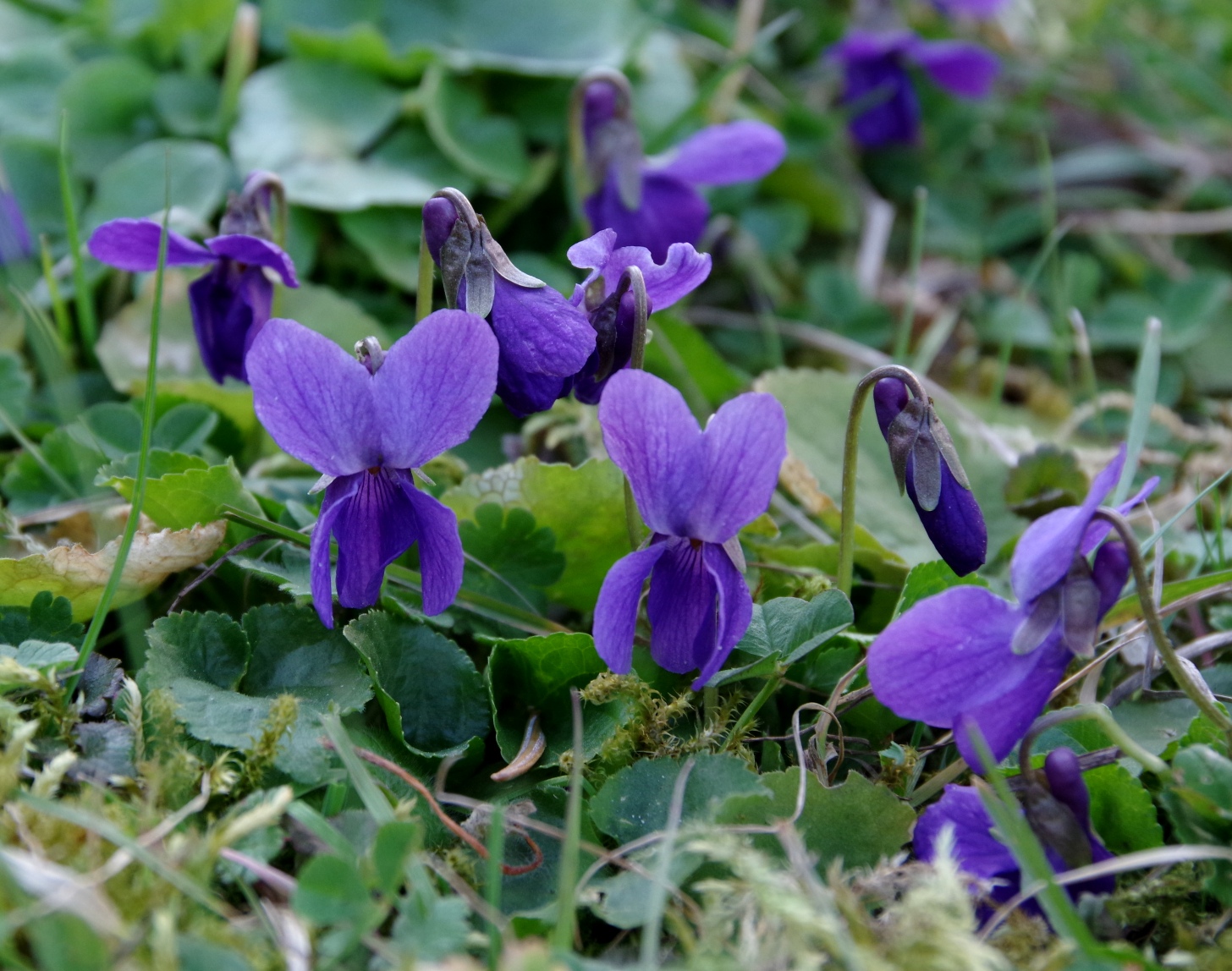 Kaum geht die Blüte der Schneeglöckchen zu Ende, wagen sich die ersten Duftveilchen hervor. Mittlerweile ist der Rasen blau vor Veilchen. Das Jahr ist zwar schon wieder einige Monate alt, aber der Frühling kommt nun endlich richtig auf Trab. Von Jahr zu Jahr erobern die Duftveilchen größere Bereiche des Gartens. Als wir vor zehn Jahren hier einzogen, waren wir von jedem einzelnen der fünf bis zehn Veilchen tief beeindruckt. Nun ist die Wiese fest in blauer Hand. Für mich ist das immer wieder eine tief empfundene Freude: Nach der Kälte und Dunkelheit des Winters, sind dies die ersten Tage, an denen ich längere Zeit draußen sitze oder arbeite. Immer wieder weht ein Duft von Veilchen durch den Garten. Frühling! Kein Wunder, dass Eduard Mörike gerade die Veilchen in seinem Gedicht „Frühling lässt sein blaues Band wieder flattern durch die Lüfte“ verewigt hat.