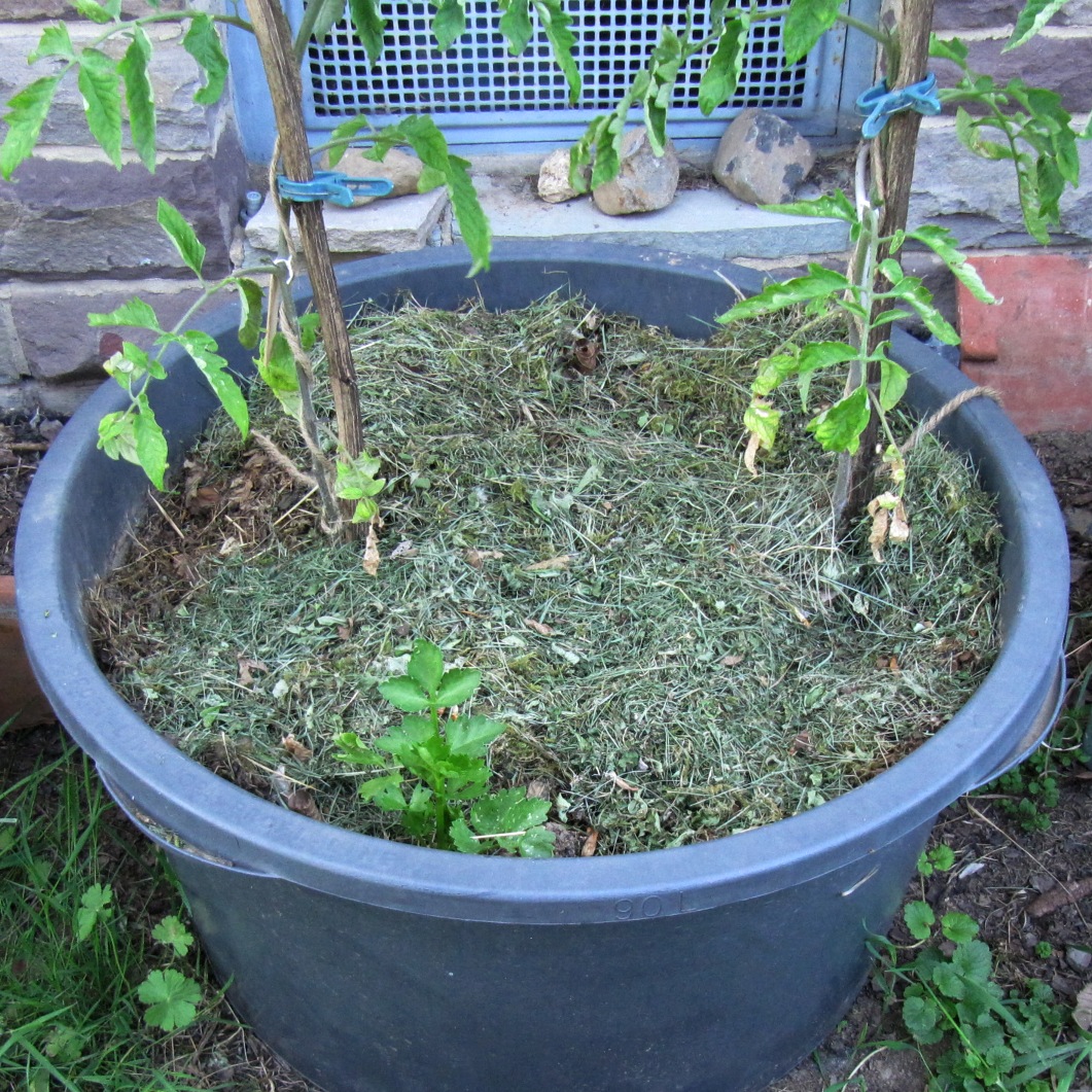 Bisher war „Rasenmähen“ eine isolierte Arbeit. Gefolgt von der ebenfalls isolierten Aufgabe „Entsorgung des Rasenschnitts“. Für den Komposthaufen war die Menge zu groß und zu feucht. Ich brachte also einen großen Teil davon zur Kompostanlage. Nun ist es ein miteinander verzahntes Konzept: Ich mähe den Rasen, damit ich Mulchmaterial für Tomatenkübel und Gemüsebeete bekomme. Die Kompostanlage entfällt, weil ich den Rasenschnitt endlich sinnvoll verwenden kann. Ich verwende die Dinge, die im eigenen Garten vorhanden sind, wo immer möglich weiter. Ein kleiner erster Schritt zur Kreislaufwirtschaft. Ja, ich bin jetzt länger mit Rasenmähen beschäftigt, weil ich den Rasenschnitt gleich weiterverarbeite, aber dafür sind am Ende des Tages alle Aufgaben erledigt.