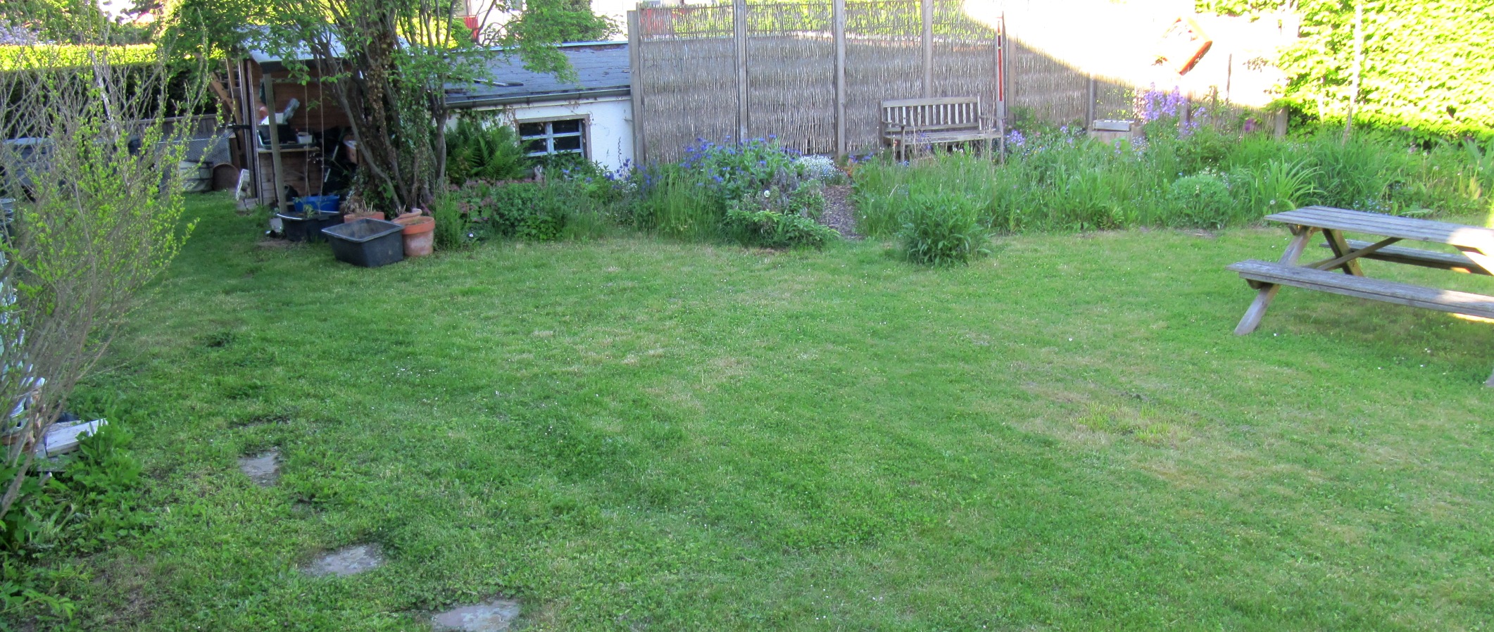 Permakultur heißt für mich nicht, dass ich den Garten planiere und neu anlege. Auch nicht, dass es nur noch Gemüsebeete gibt. Aber vieles, was ich über Permakultur lerne, ist so überzeugend, dass ich es Stück für Stück in den vorhandenen Garten einbaue. So auch mit dem Rasenmähen.