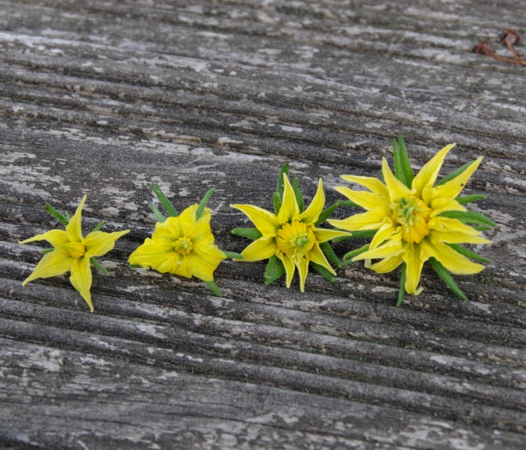 Im letzten Jahr war ich beeindruckt von den unterschiedlichen Tomatenblüten. Hm, es ist wahrscheinlich nicht weiter überraschend, dass so unterschiedliche Tomatensorten wie Wildtomaten und Ochsenherztomaten auch unterschiedliche Blüten haben. Ich hatte mir einfach vorher noch nie Gedanken darum gemacht. Daher hatte ich eine ganze Sammlung der verschiedenen Blüten fotografiert. Das war am 6. Juni 2020.