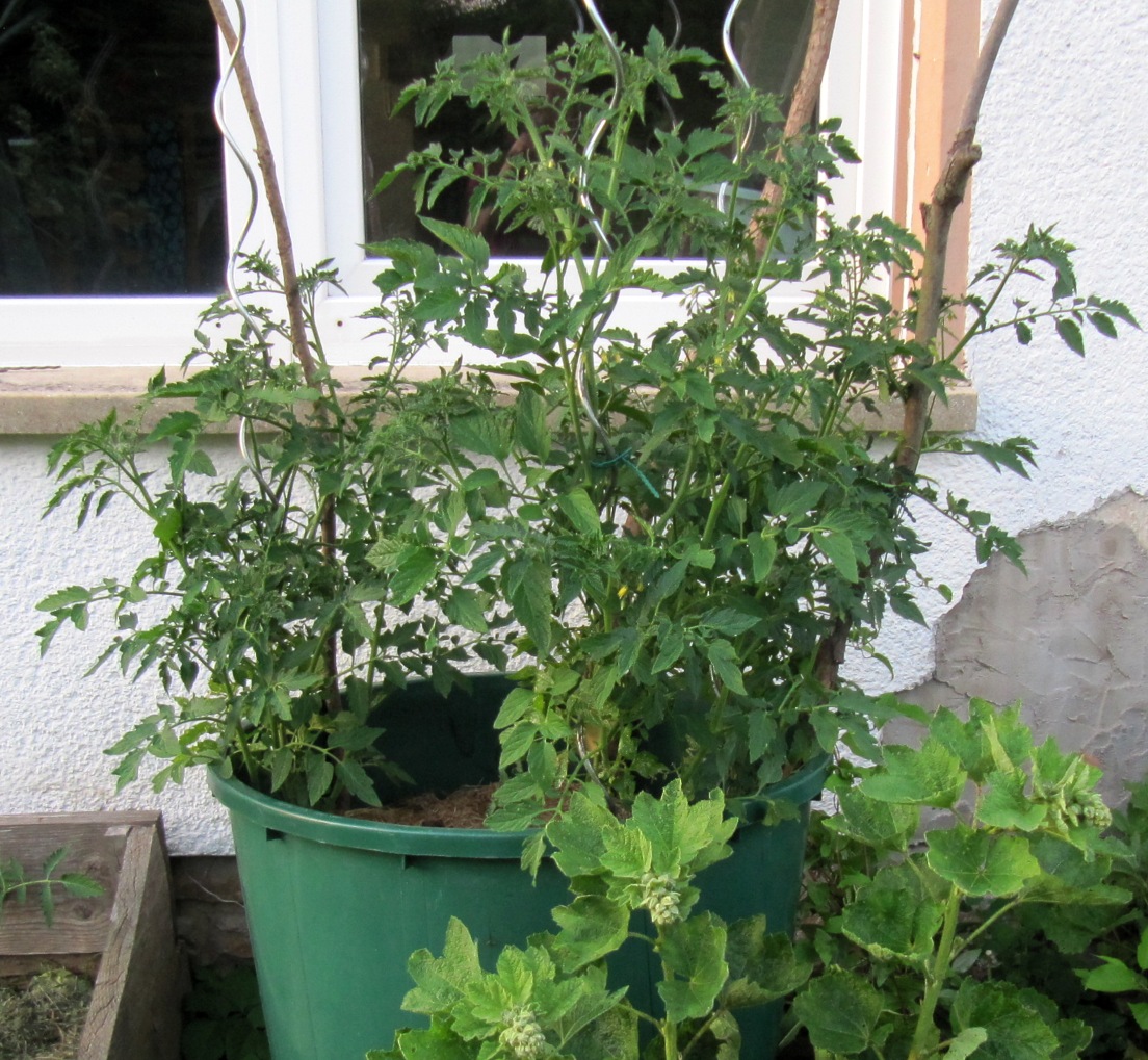Der einzige Nachteil ist, dass die Büsche im Laufe des Sommers so sehr wuchern, dass sich längst nicht alle Tomaten ernten lassen ohne die Zweige herauszubrechen.