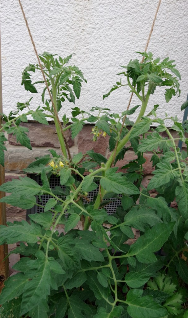Oft entdecke ich einen zweiten Haupttrieb auch nicht sofort – und wenn er schon mal da ist und Blüten hat, dann finde ich die Chance auf eine größere Anzahl an Tomaten verlockender als die Größe jeder einzelnen Tomate.