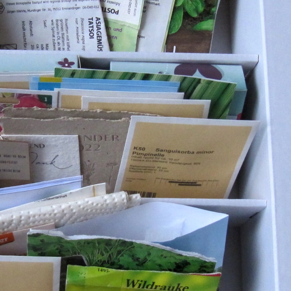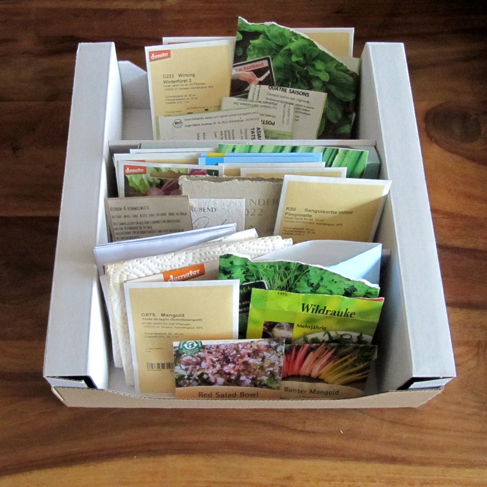 Ein Instagram-Beitrag von Rankwerk aus Kiel hat mich auf eine Idee gebracht, die ich eigentlich schon längst selbst hätte gehabt haben können: Den Saatplan nicht nur als eine Liste erstellen, sondern zusätzlich gleich einen nach Monaten sortierten Karton füllen.