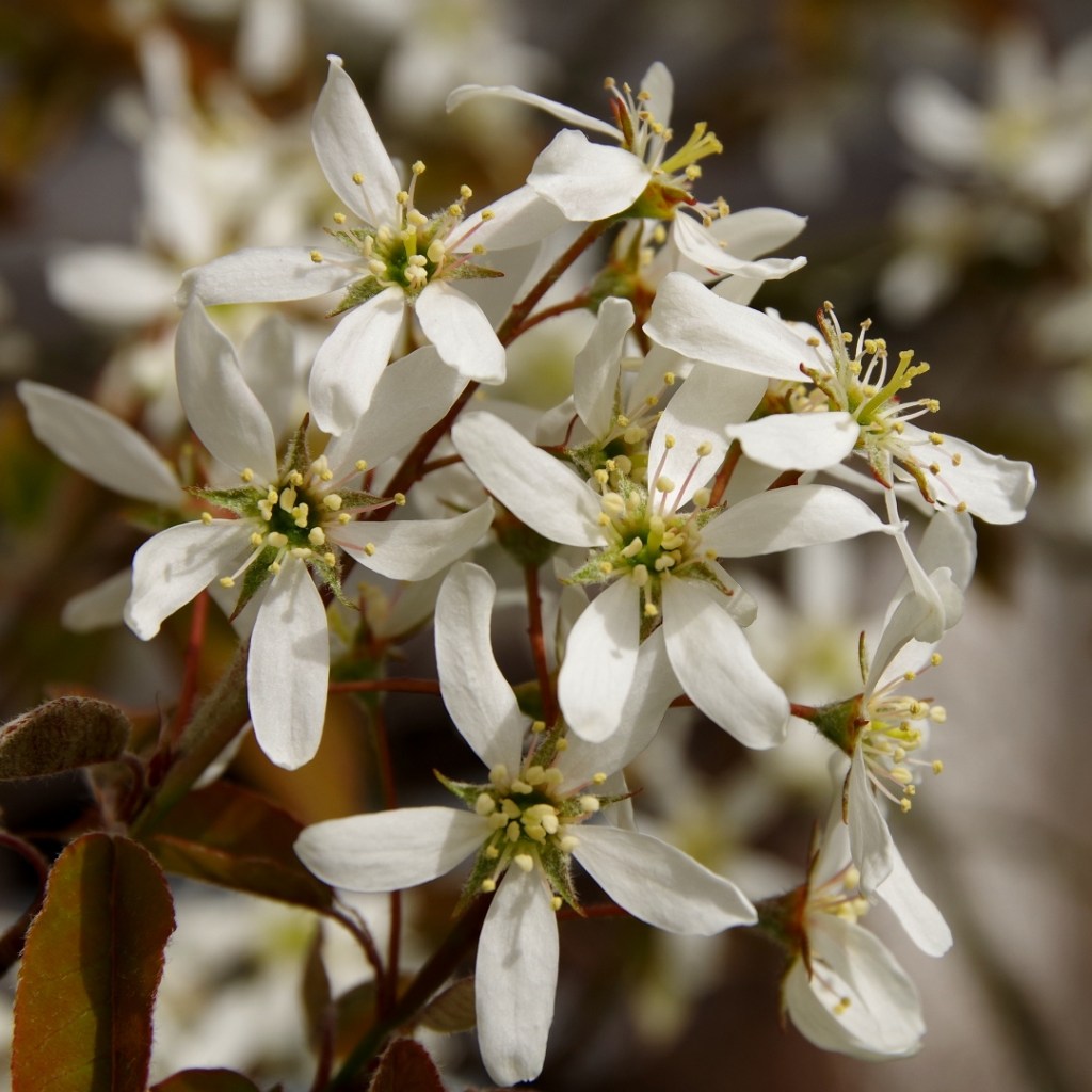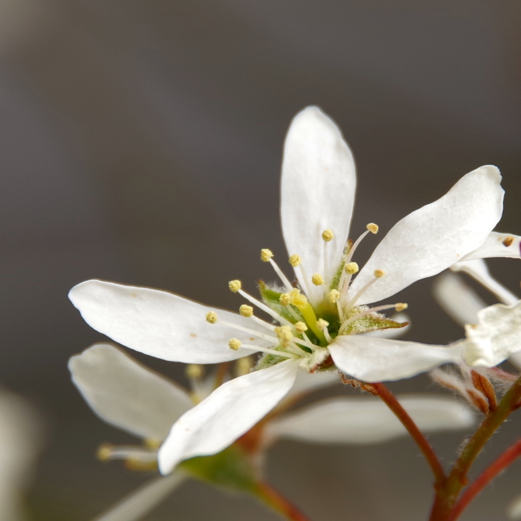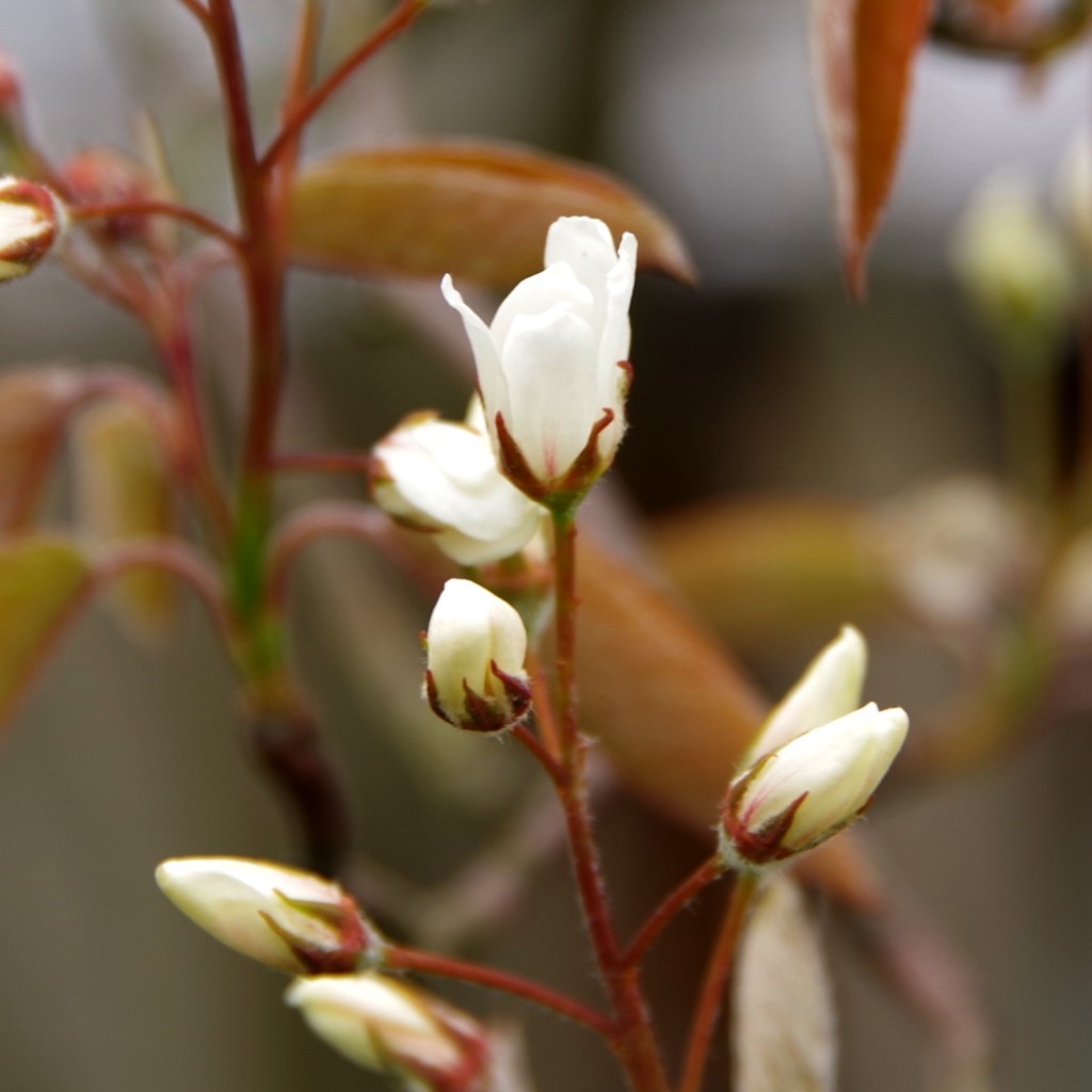 Kurz nach den Küchenschellen erschienen auch die Knospen der Felsenbirne. Beide sind wie in einen wolligen Flaum gehüllt. Für die nächsten Tage war böser Frost angesagt und ich sorgte mich, dass die filigranen Blütensterne erfrieren, bevor sie aufblühen konnten. Alle paar Tage schaute ich nach den Knospen und machte neue Fotos. Und jedes Mal war ich überrascht, dass die Knospen die frostigen Nächte mit Temperaturen bis –8 °C ohne Schaden ertrugen.