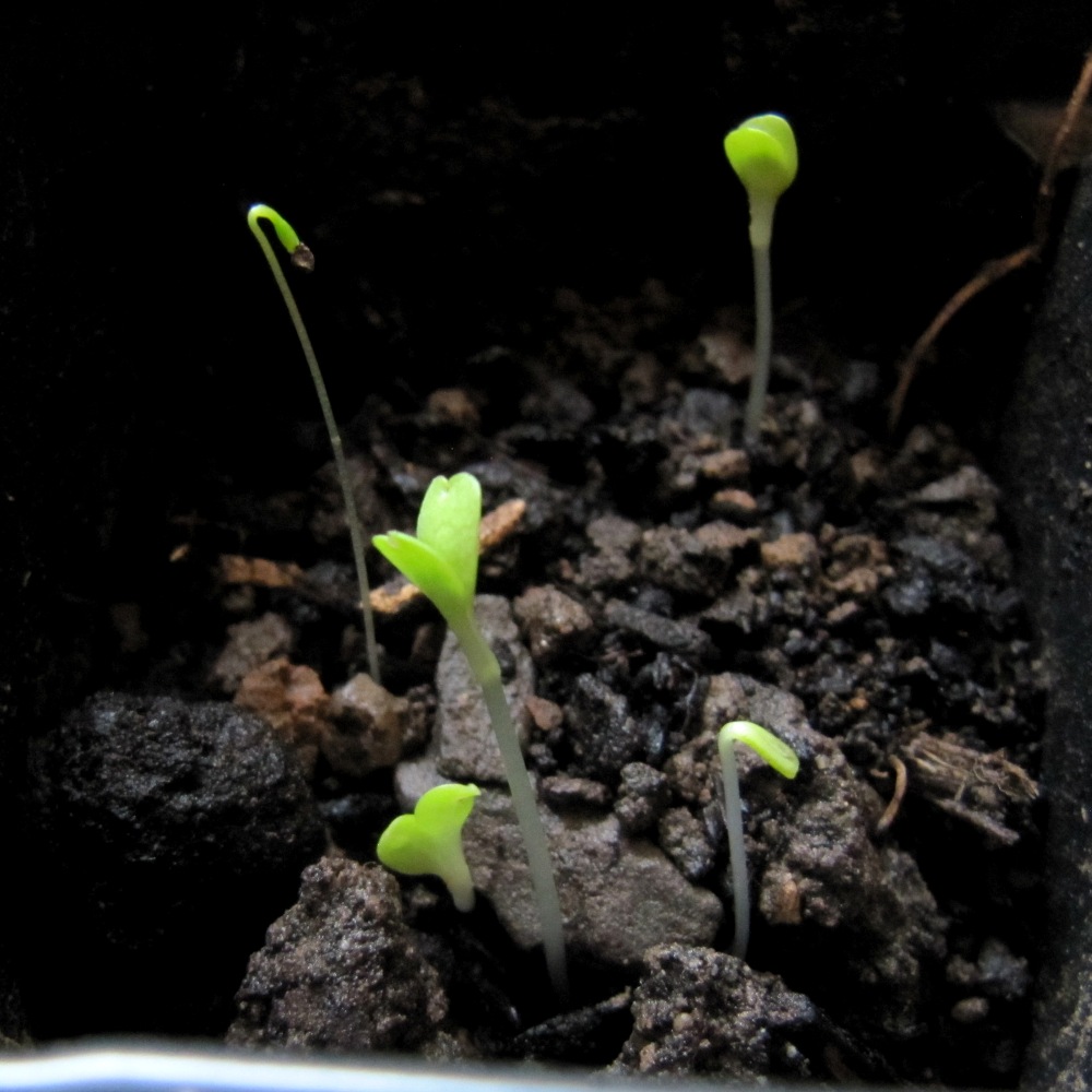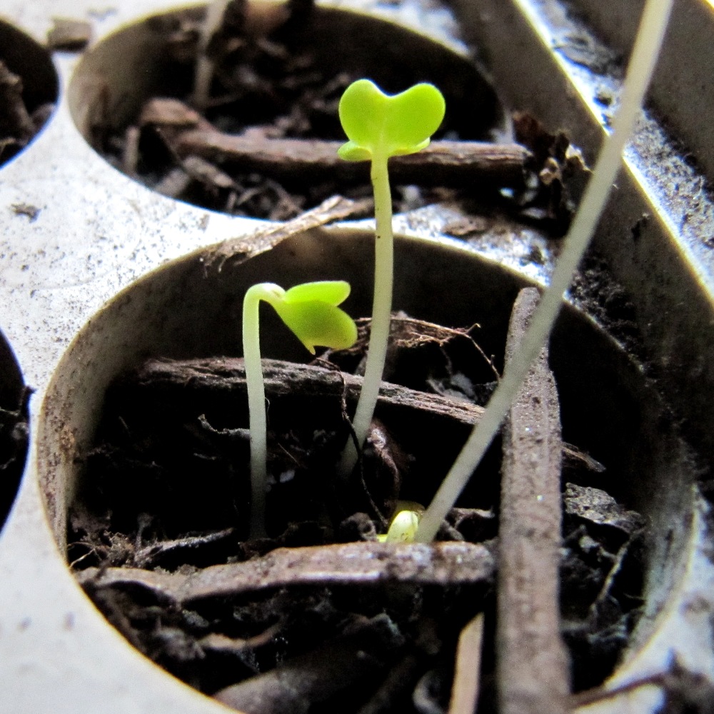 Ich säe aus, als sei es März und stelle die Sämlingshäuser dann aber zuerst in den Keller. Erst wenn die Saat ausgekeimt ist, kommen sie zurück auf die Fensterbank damit die Keimlinge sich nicht zu sehr nach dem Licht strecken. Auf der hellen Fensterbank können sie sich dann mit Wärme, Licht und ganz viel Gießen zu Jungpflanzen entwickeln.
