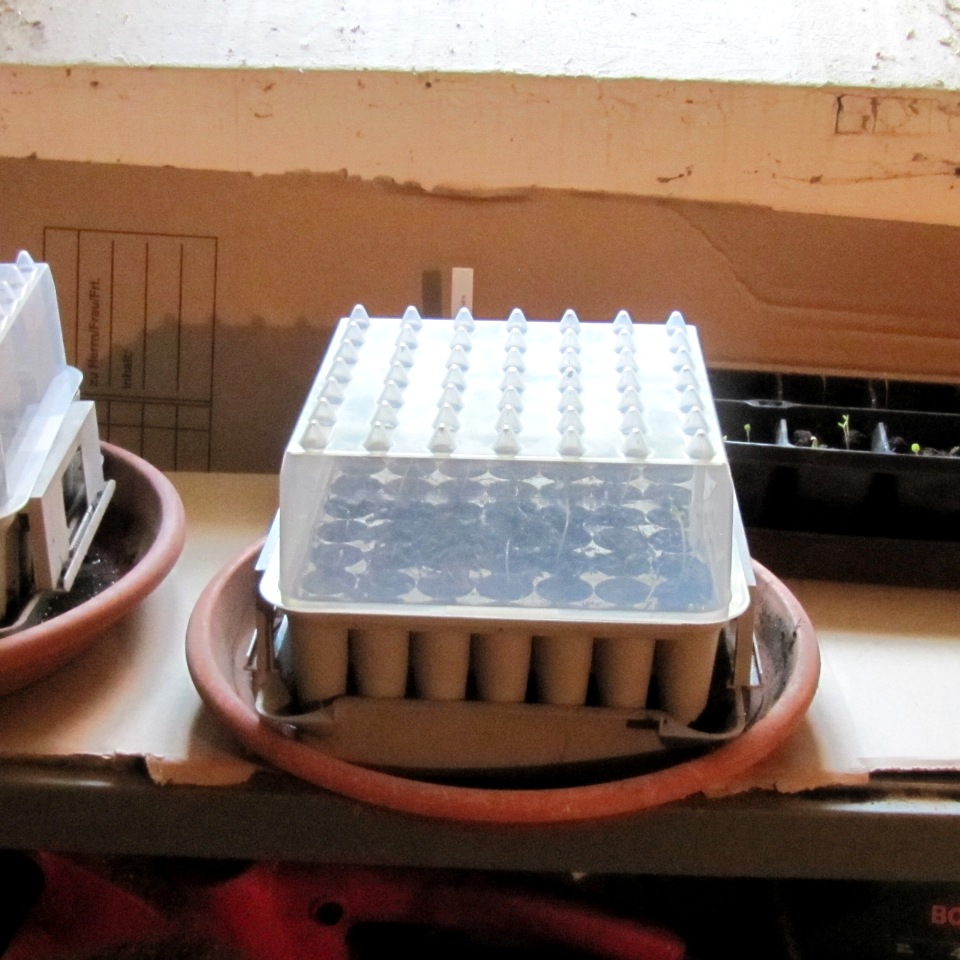 Mit dem Feldsalat warte ich noch etwas, weil ich den direkt ins Beet säe. Alles, was ich vorziehe sähe ich jetzt im Keller aus.