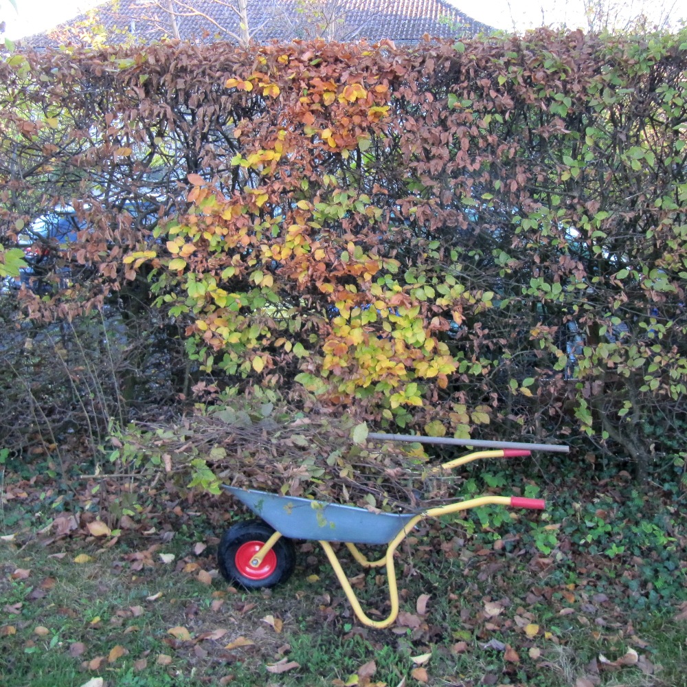 Der zweite Grund für den Schnitt im Spätherbst sind die Vögel, die in der Hecke brüten. In den letzten Jahren fangen sie sehr früh mit dem Nestbau an und sind im Juni noch nicht eindeutig mit der zweiten Brut fertig. Oft entdecke ich die Nester wirklich erst jetzt beim Schneiden. Wenn ich also nicht im August in der Hochsommerhitze schneiden will, bleibt fast nur der Spätherbst als Termin übrig.