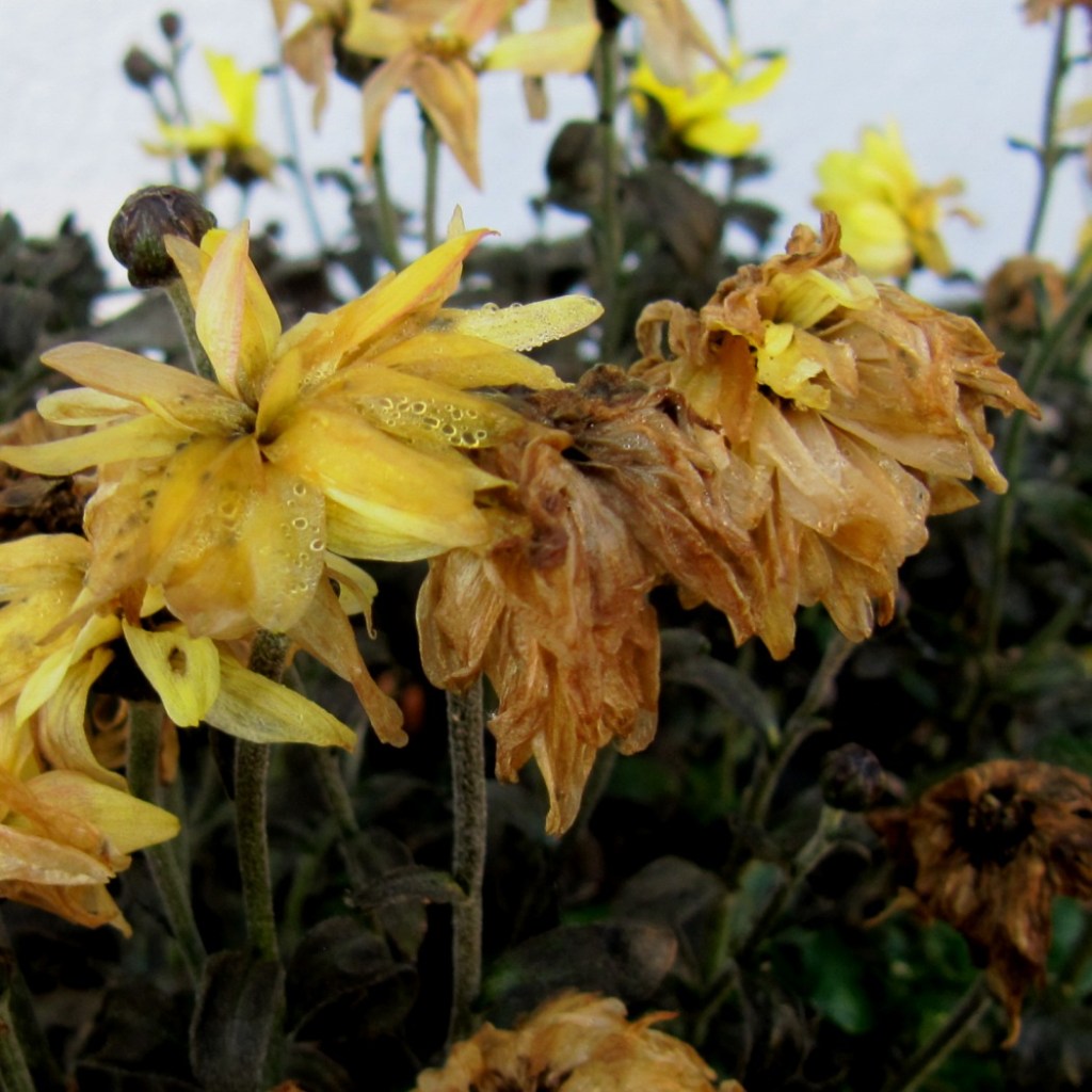 Die Monate vergehen und mittlerweile ist es wirklich Herbst geworden. Seit den ersten Frostnächten sogar eindeutig Spätherbst. Die Chrysanthemen wurden in einer einzigen Frostnacht dahingerafft. Viele andere Sommerblumen wie Cosmea auch. Ich hatte gehofft die Ringelblumen seien etwas härter im Nehmen, aber auch sie sind hinüber.