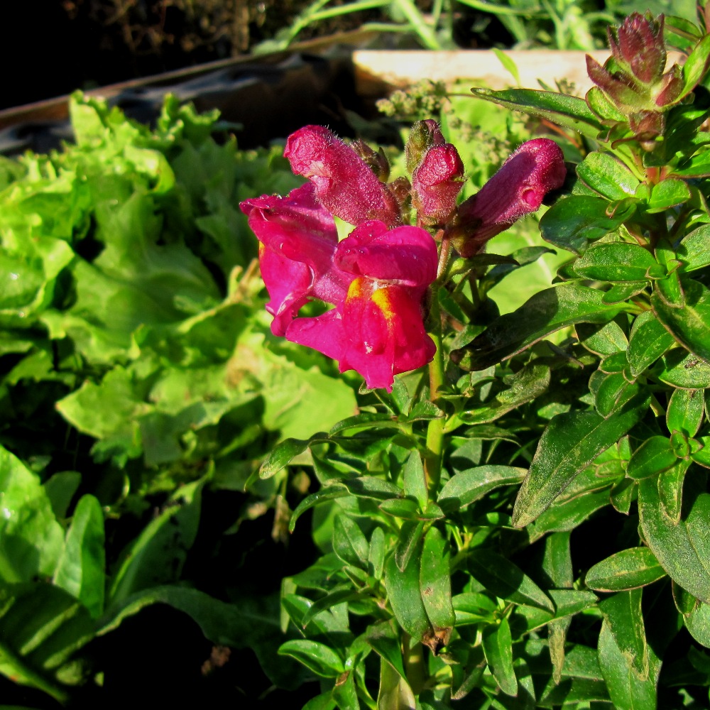 Heute Morgen sehe ich allerdings doch noch einige Blüten im Garten: Löwenmäulchen und Ysop blühen auch nach dem Frost noch. Das sind die wahren Herbstblumen! Auch Glockenblume und eine versteckte Weiße Waldnelke finde ich noch.