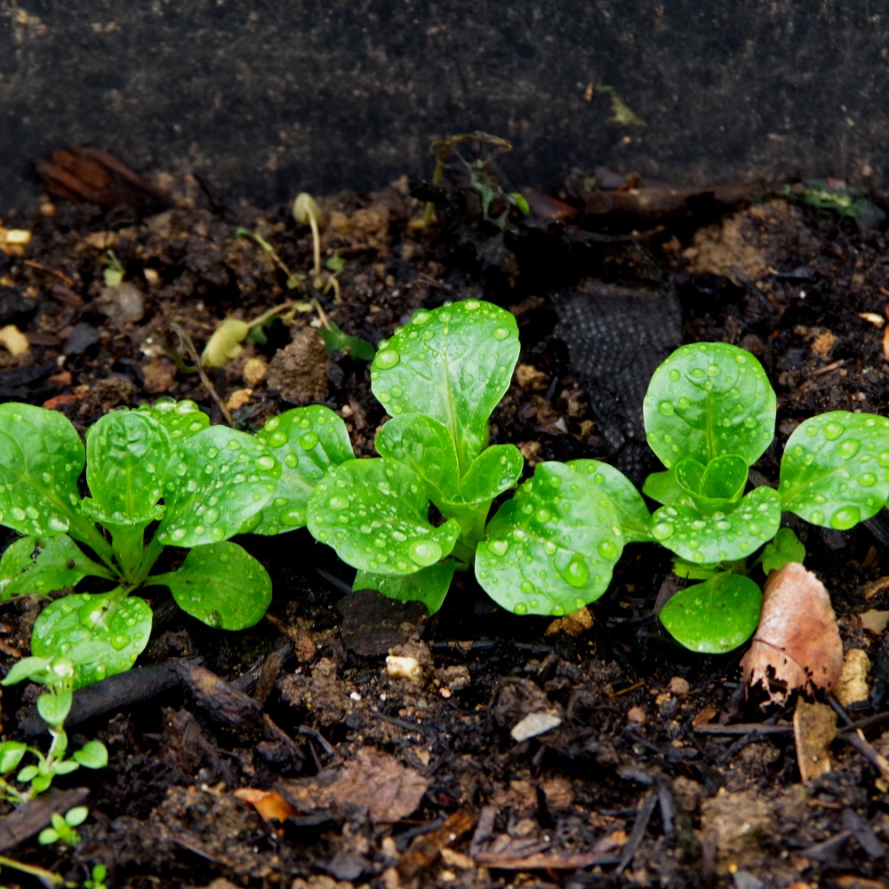 Noch im November hatte ich Winterpostelein ins Freiland gesät. An dieser Stelle ist mittlerweile ein dichter Rasen aus grünen Halmen entstanden. Ich kann noch nicht sagen, ob es wirklich Postelein ist. Doch ganz gleich, was dies einmal werden wird, es muss extrem frostfest sein und sogar bei diesen Temperaturen auskeimen.