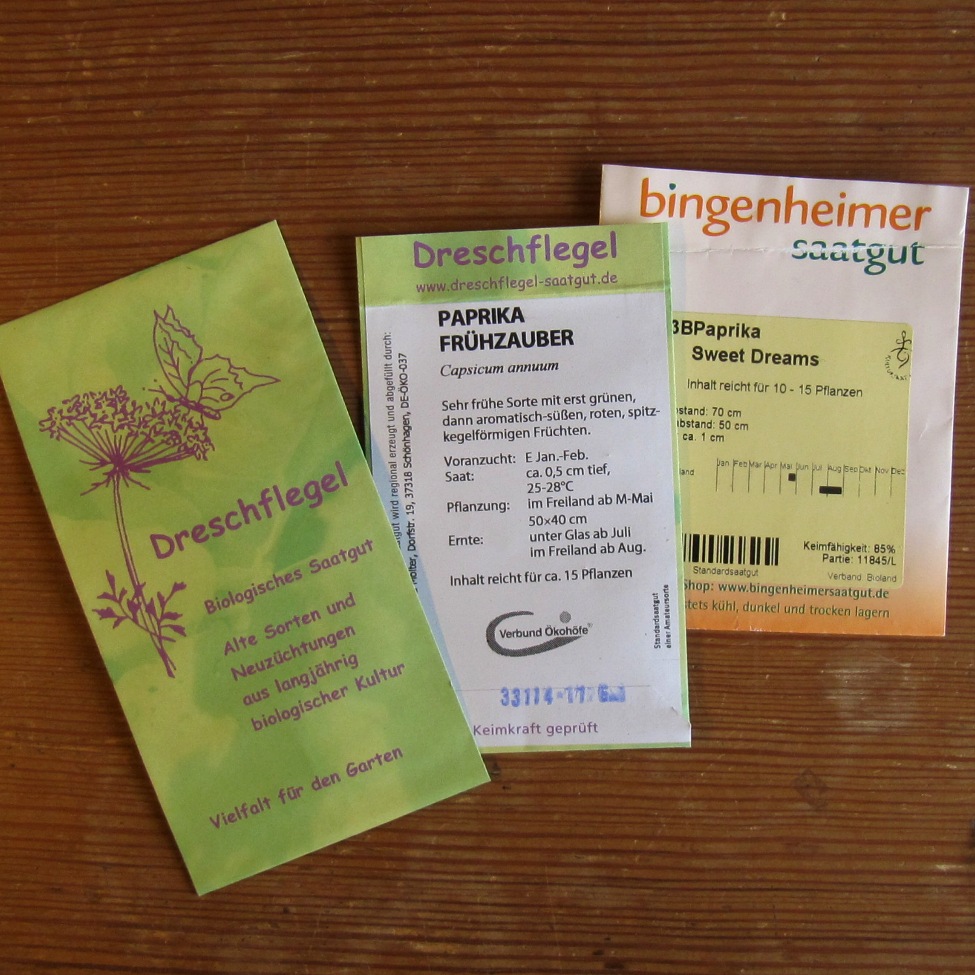 Paprika braucht eine gefühlte Ewigkeit, bis die Früchte reif sind. Selbst Keimen und Wachstum der Sämlinge erfolgt in Zeitlupe. Paprika sind daher jedes Jahr die erste Aussaat. In diesem Jahr säe ich hauptsächlich die Sorte Frühzauber von dreschflegel.
